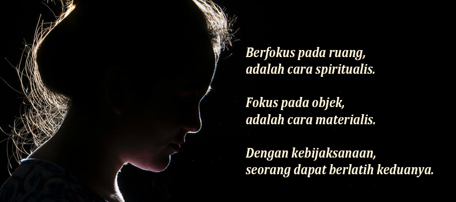Tetap diam, itu memfasilitasi pergerakan suara dan menjunjung tinggi semua manifestasi. Karenanya, ruang yang sesungguhnya adalah Brahman, sang Diri Tertinggi. Jika kita berfokus pada ruang, kita akan mengalami kedamaian yang lebih besar di dalam diri dan di sekitar kita.