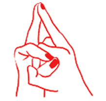 Dengan telapak tangan di depan dada, tekan jari kelingking dan jari manis bersamaan. Lipat ibu jari ke telapak tangan, di dalam telunjuk dan jari tengah, kemudian dapat menekan buku-buku jari kedua jari ini bersama-sama atau memisahkannya. Langkah opsional: Turunkan tangan tepat di bawah pusar diatas genital.