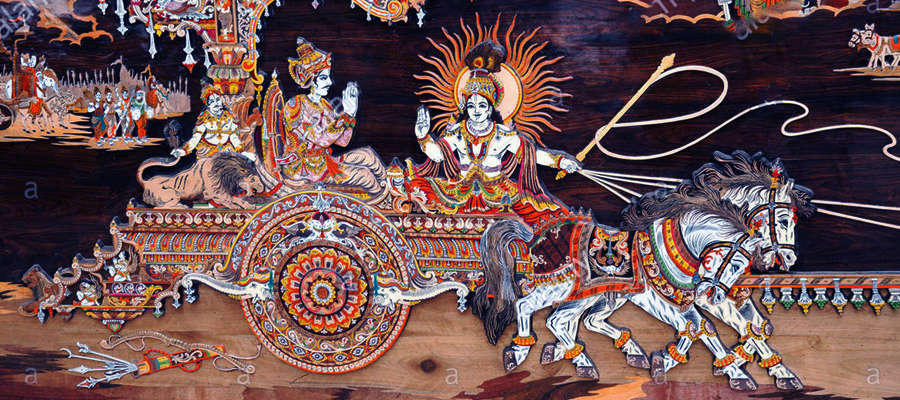 The storyline in the Mahabharatha is based on the conflict between two groups of cousins, the diabolical Kauravas, and the virtuous Pandavas. The Pandavas and their supporters, with the aid of Lord Krishna, vanquish the Kauravas confederation during the 18-day war fought on the battlefield of Kurukshetra. The Bhagavad Gita is a prelude to the Kurukshetra war; the context involves the accomplished and astute archer Arjuna on a chariot navigated by Lord Krishna (the guide and the charioteer), getting ready to face the large army of enemies consisting of his relatives, teachers and mentors. Though a mighty warrior, Arjuna is unwilling as he fears annihilation of his kin’s and mentors. As a result of guilt, doubt and attachment to his loved ones, Arjuna contemplates withdrawing from the battlefield. The Gita is a discourse by Lord Krishna, guiding his disciple Arjuna to the right course of action to help him fulfill his destiny in the war, a triumph of righteousness over evil. This interaction between Lord Krishna and Arjuna encompasses many psychotherapeutic principles.